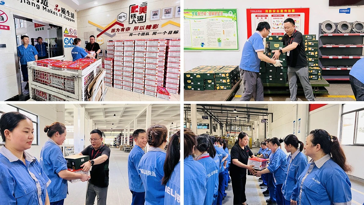 心系车间一线员工,为了切实做好防暑降温工作,关爱员工身体健康,预防高温中暑,除配备防暑降温药品等物资外,铁流股份还给车间一线员工送去了清凉香甜的西瓜;同时,6月份生产交付创新高,生产运营系统每人再赠送一箱桃子和一箱饼干,慰问在高温中坚守一线岗位上的员工。