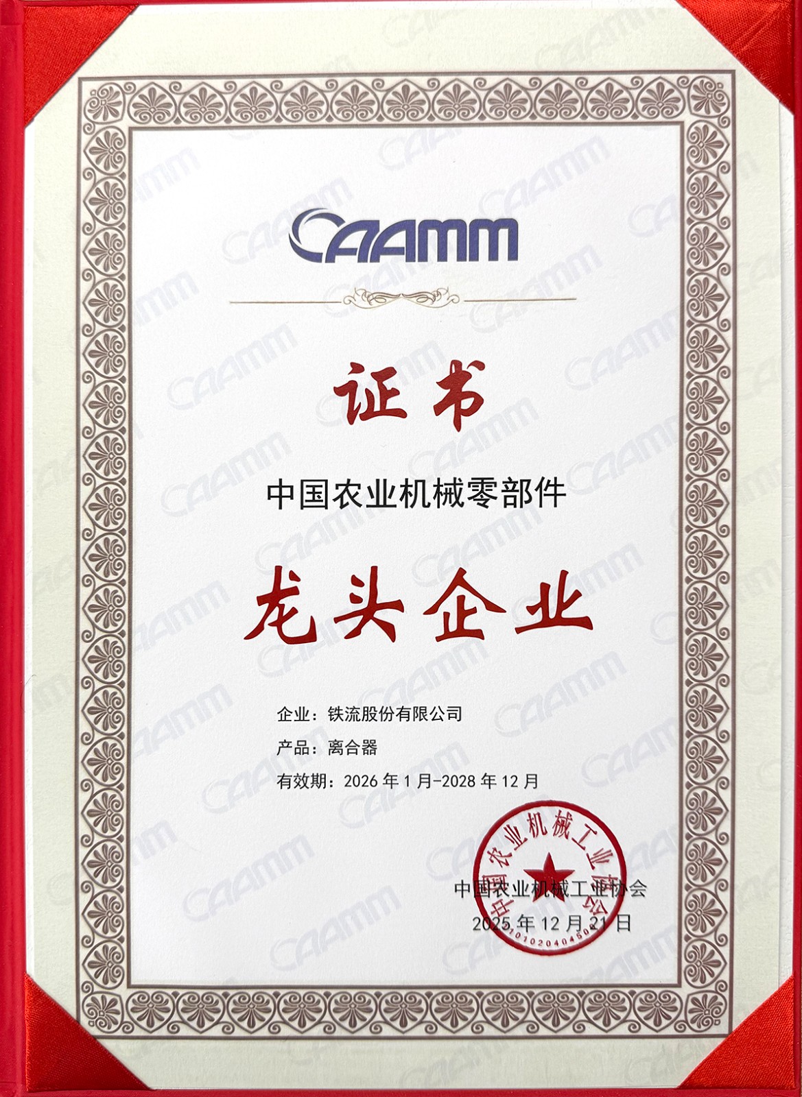 会上,除审议协会年度工作报告外,还颁发了多个权威奖项,系统呈现了农机工业的发展成果与创新力量。其中,铁流股份获评 “中国农业机械零部件龙头企业”。